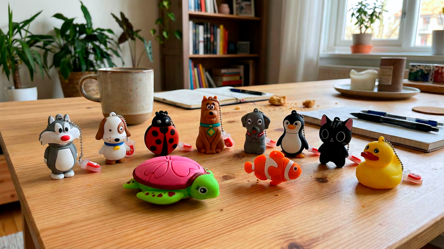Чтобы облегчить вам предпраздничную суету, я решил собрать подборку очаровательных и, что немаловажно, бюджетных подарков для детей. Речь пойдёт о тематических наборах флеш-накопителей в виде животных.