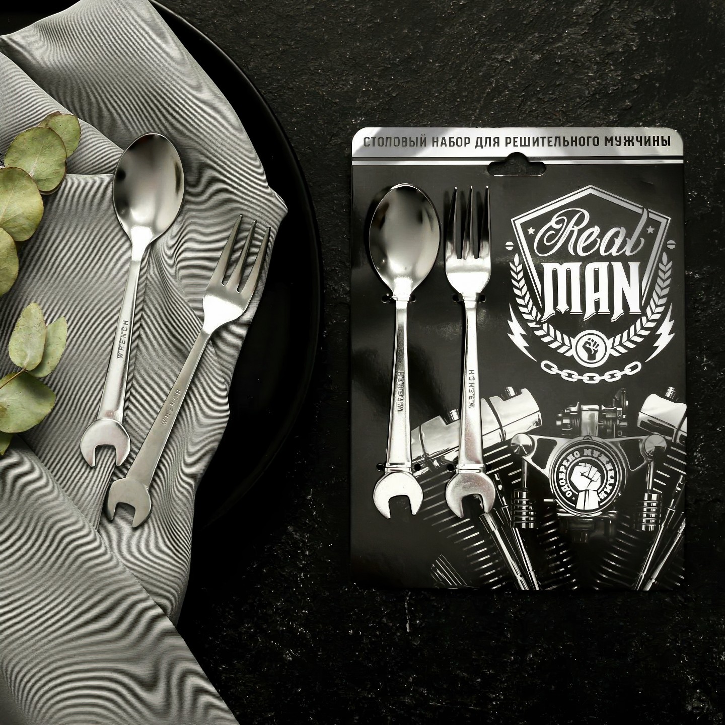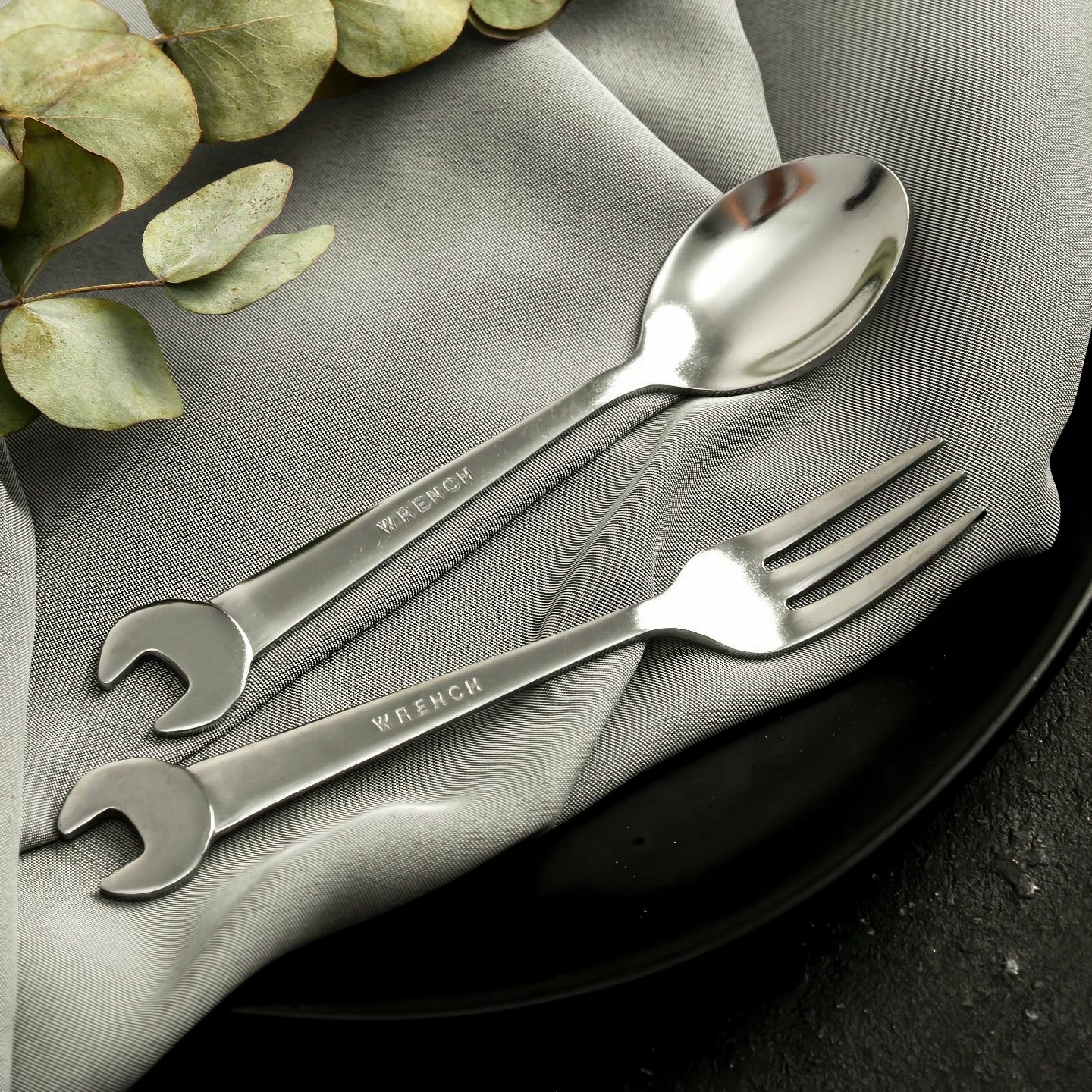 Оригинальное сочетание чайной ложки и десертной вилки, объединённых общей темой слесарного инструмента, придётся по вкусу людям технических профессий. Навершия, выполненные в форме гаечных ключей, демонстрируют внимание к деталям и качество исполнения.