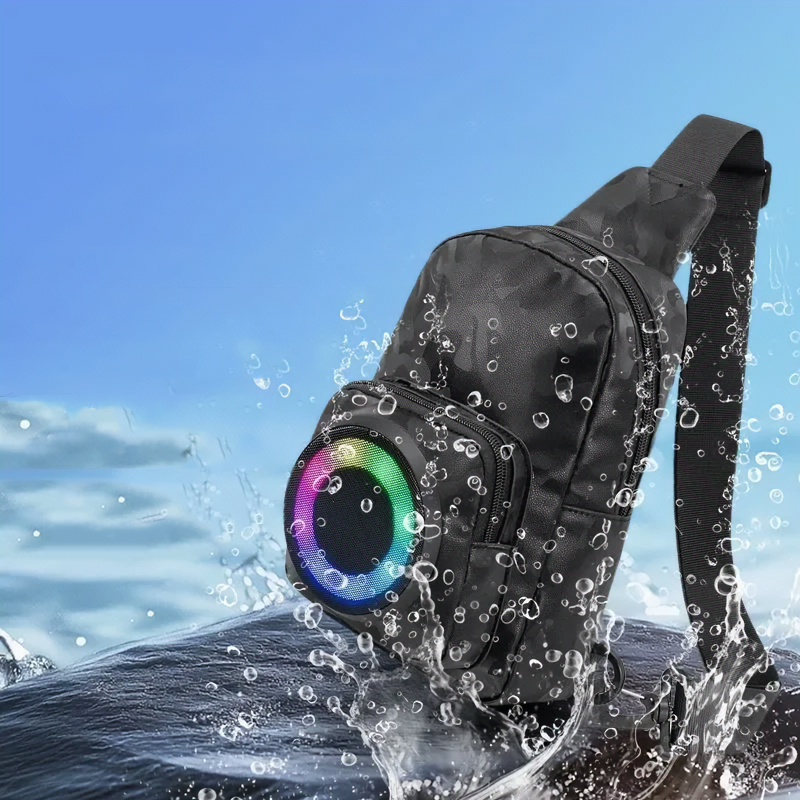 Необычный гибрид рюкзака/сумки и Bluetooth-колонки с подсветкой и функцией повербанка. Мощность динамика составляет 10 Вт, аккумулятор емкостью 2500 мАч позволяет рассчитывать на автономность в 6 — 8 часов.