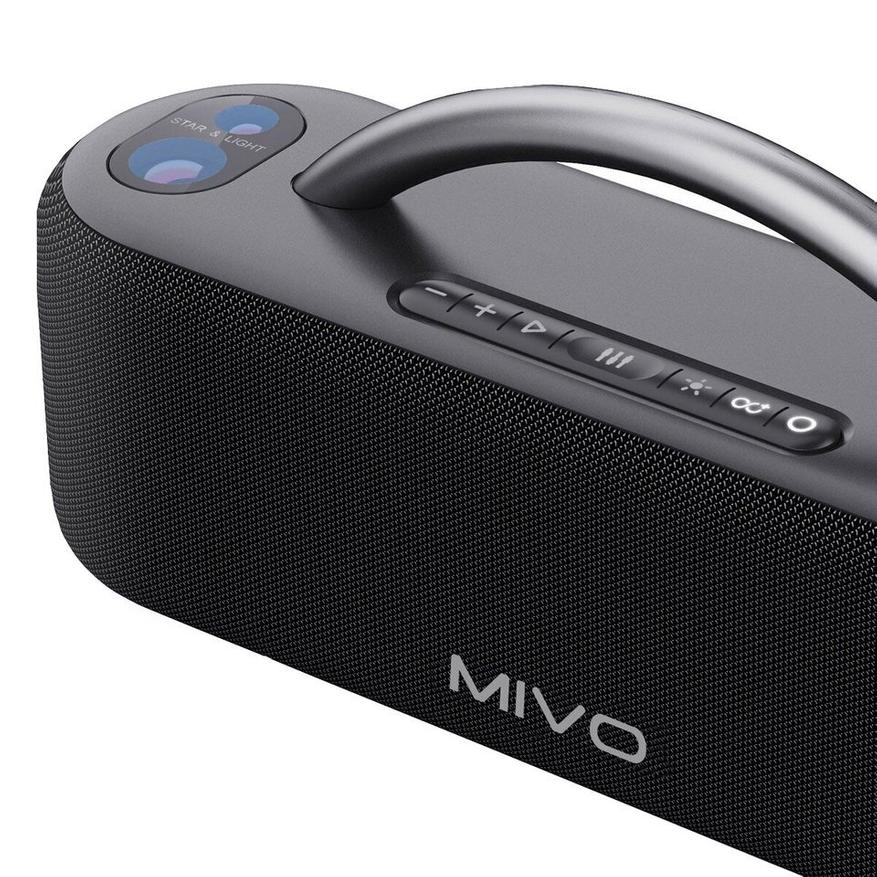 Mivo M16 — это портативная Bluetooth-колонка мощностью 60 Вт со встроенным проектором звездного неба и RGB-подсветкой. Аккумулятор на 4400 мАч обеспечивает до 8 часов непрерывной работы. Поддерживает карты памяти до 128 ГБ и имеет вход для микрофона, что делает устройство подходящим для караоке-вечеринок.