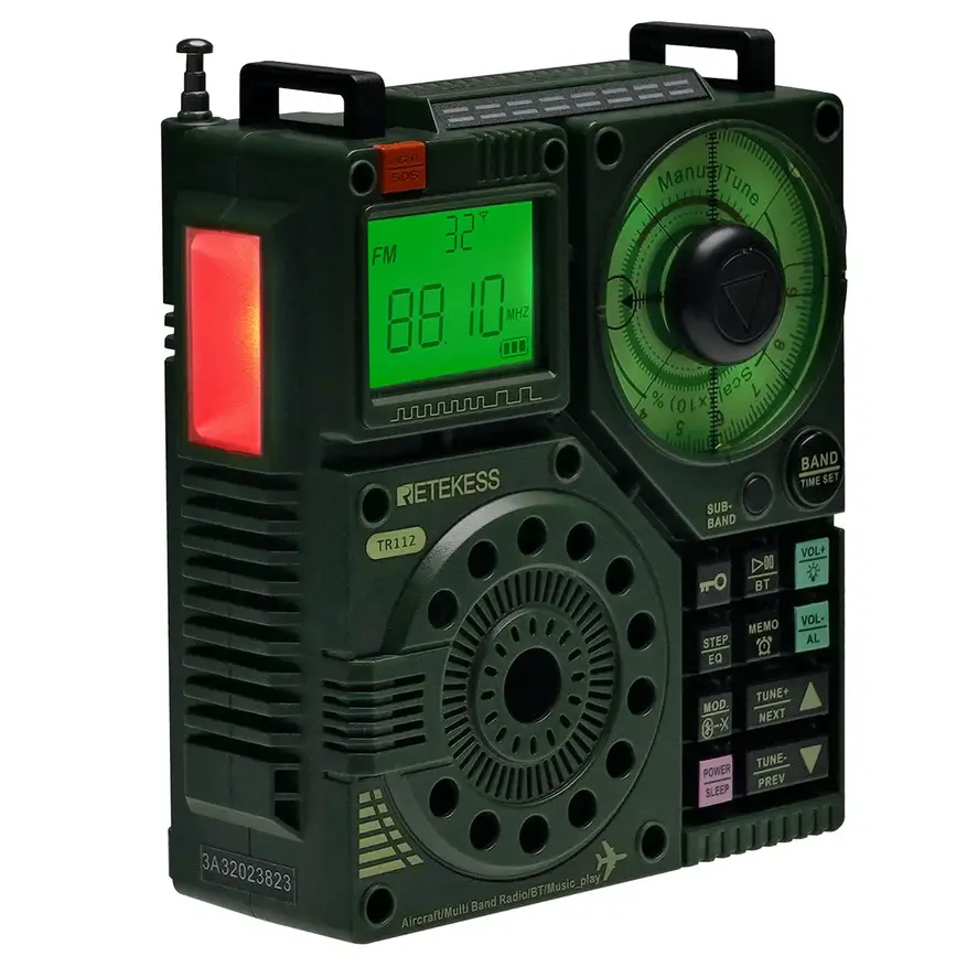 Портативное радио с поддержкой 6 диапазонов: FM (64-108 МГц), MW (520-1710 кГц), SW (3,20-21,95 МГц), VHF (30-199,975 МГц), авиационный AIR (118-138 МГц) и погодный WB (162,4-162,55 МГц). Заявлена память на 995 каналов (199 на каждый диапазон) с автоматическим и ручным поиском станций. Аккумулятор 1600 мАч обеспечивает более 10 часов работы.