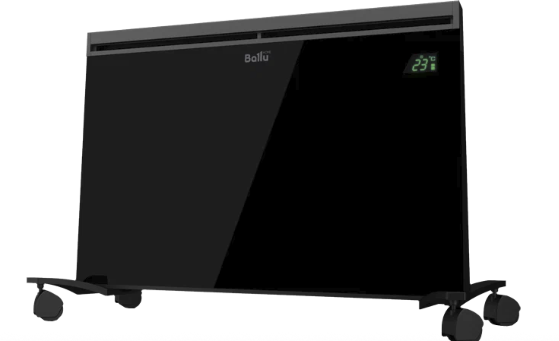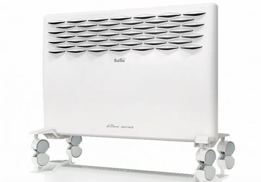 Ballu Plaza EXT защищён от перегрева и влаги по стандарту IP24, поэтому его можно смело ставить даже в ванной или на кухне. Он может быть закреплён на стене или установлен на усиленные ножки с колёсиками — в комплекте есть всё необходимое.