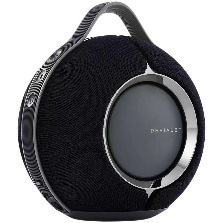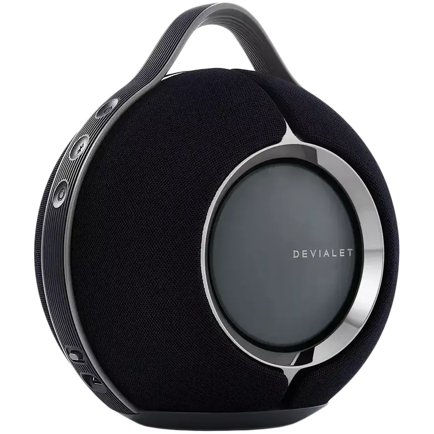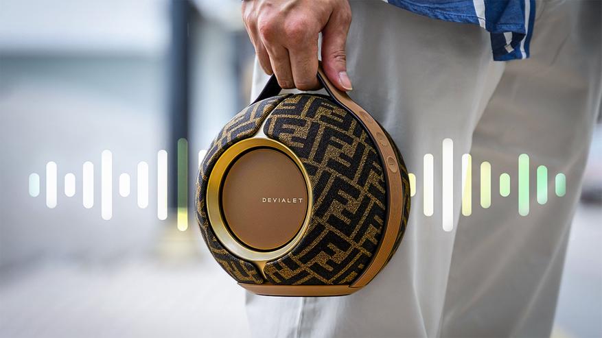 Французская Devialet Mania — это первая портативная колонка от бренда, известного своими флагманскими стационарными системами сегмента Hi-End. Сферический корпус диаметром 17.6 см весит 2.3 кг и оснащён шестью динамиками: два противофазных вуфера и четыре полнодиапазонных алюминиевых излучателя сверху.