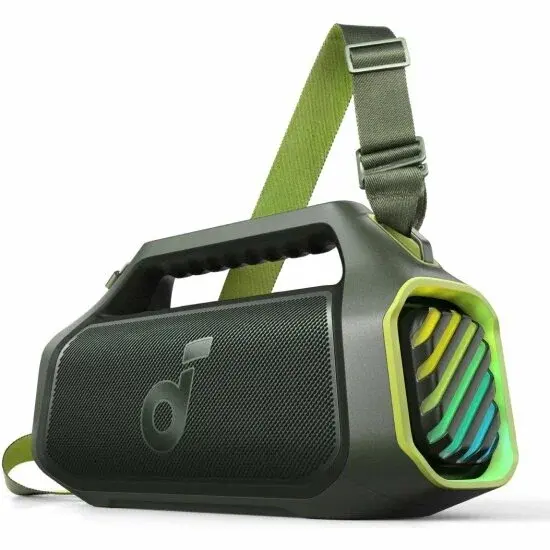 Поддерживается Bluetooth 5.1 с кодеками AAC и SBC. Особенность модели — настраиваемая RGB-подсветка с тремя режимами работы и регулируемый ремень-ручка для переноски. В комплекте идёт массивный зарядный блок на 65 Вт, который заряжает устройство за 3 часа.