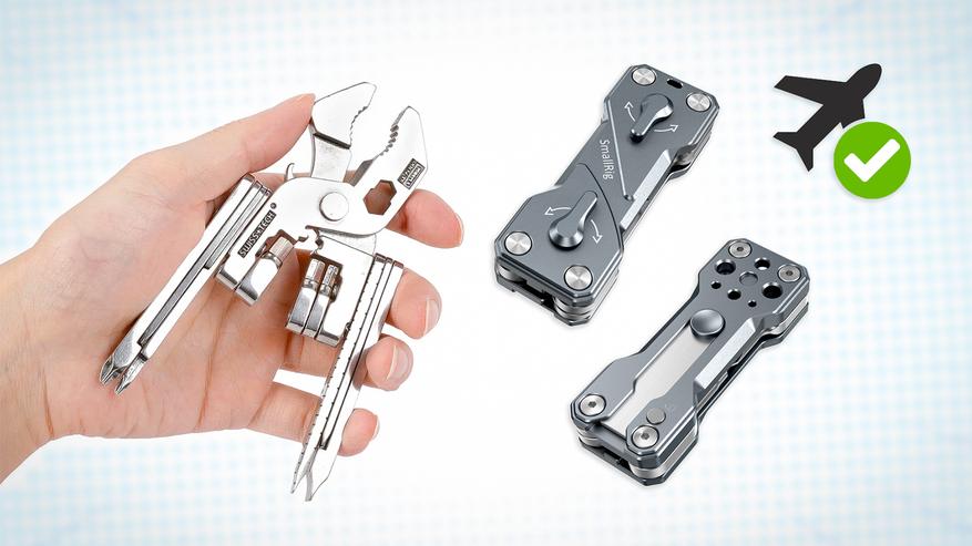 Завершает подборку стильный складной набор инструментов, наиболее полезный для видеооператоров. SmallRig Hunter — это корпус из алюминиевого сплава с инструментами из нержавеющей стали, дополненными механизмом для удобного их извлечения. Мультитул весит 120 грамм при размерах 30 x 81 x 21.3 мм.