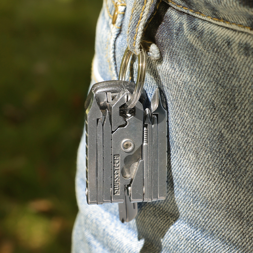Подпружиненные ножницы, стальной пинцет и пластиковая зубочистка дополнены комбинированным инструментом, включающим намагниченную крестовую отвертку, открывалку и инструмент для зачистки проводов, что делает его универсальным помощником для ежедневных задач. При массе в 22 г этот мультитул практически не ощущается в карманах.