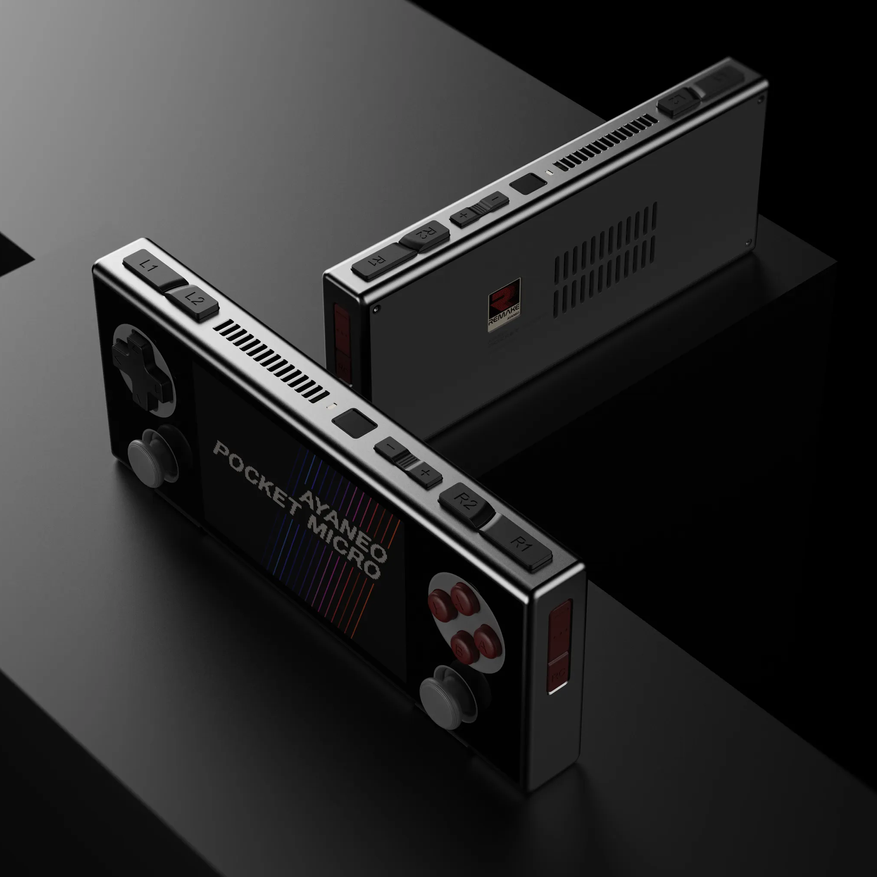 Далее рассмотрим еще более компактную модель. AYANEO Pocket Micro имеет размеры 156 x 63 x 18 мм, но она немного тяжелее (233 г), чем Retroid Pocket Mini, из-за своего металлического корпуса. Здесь более свежий, но менее производительный процессор — MediaTek Helio G99.