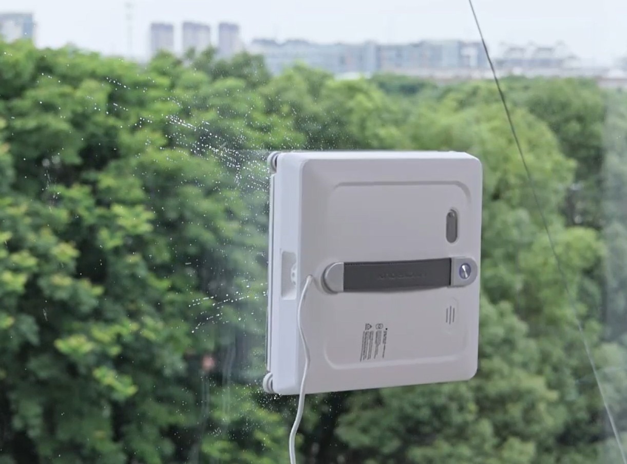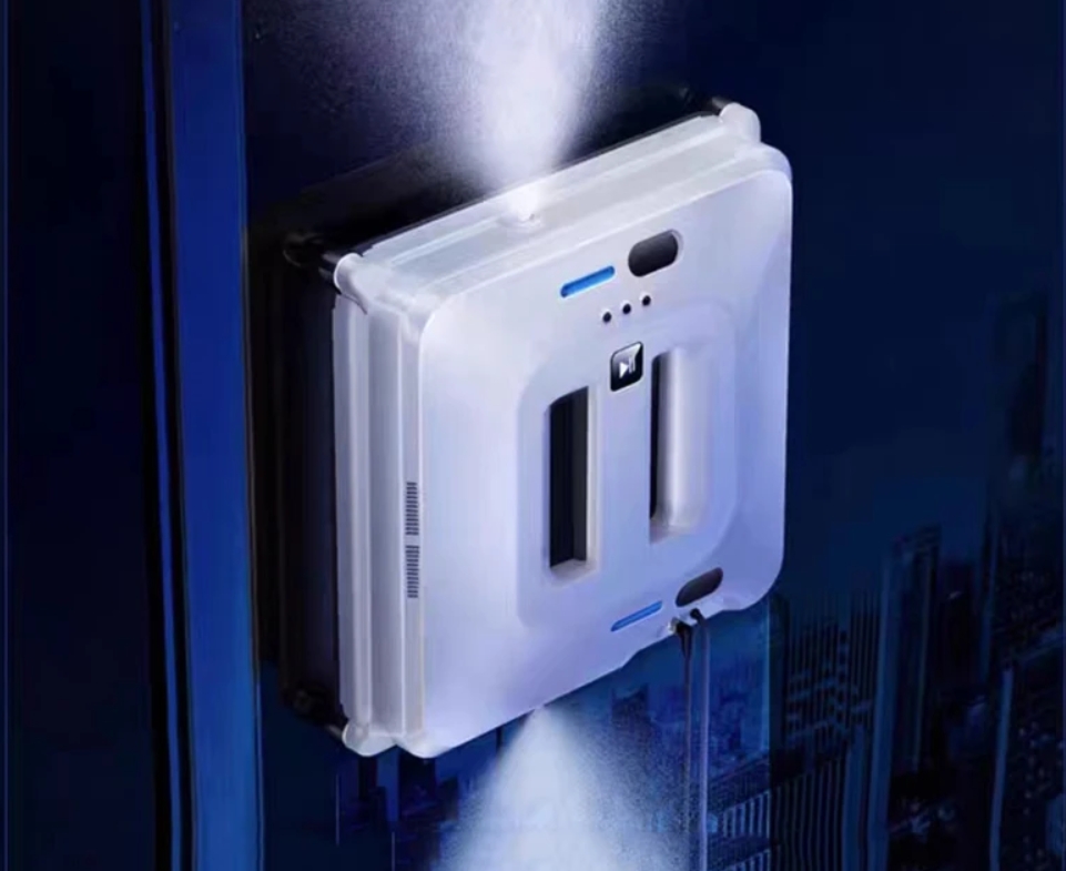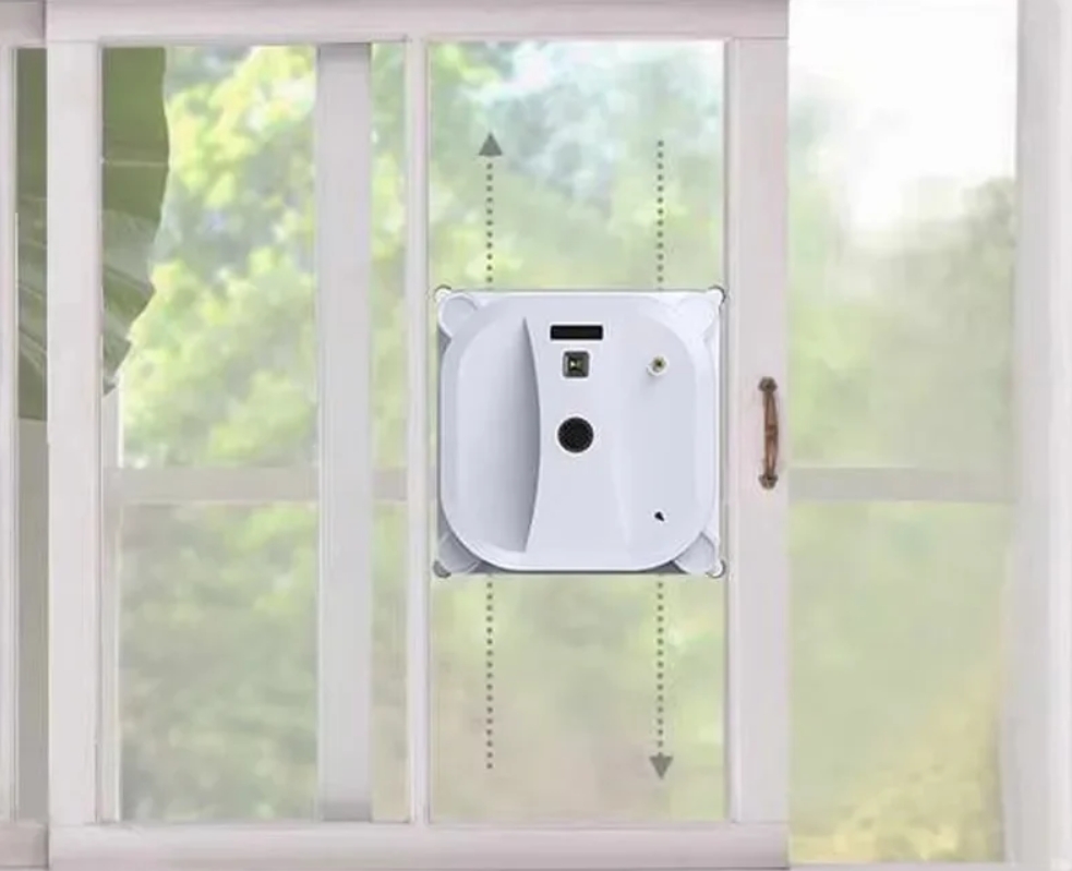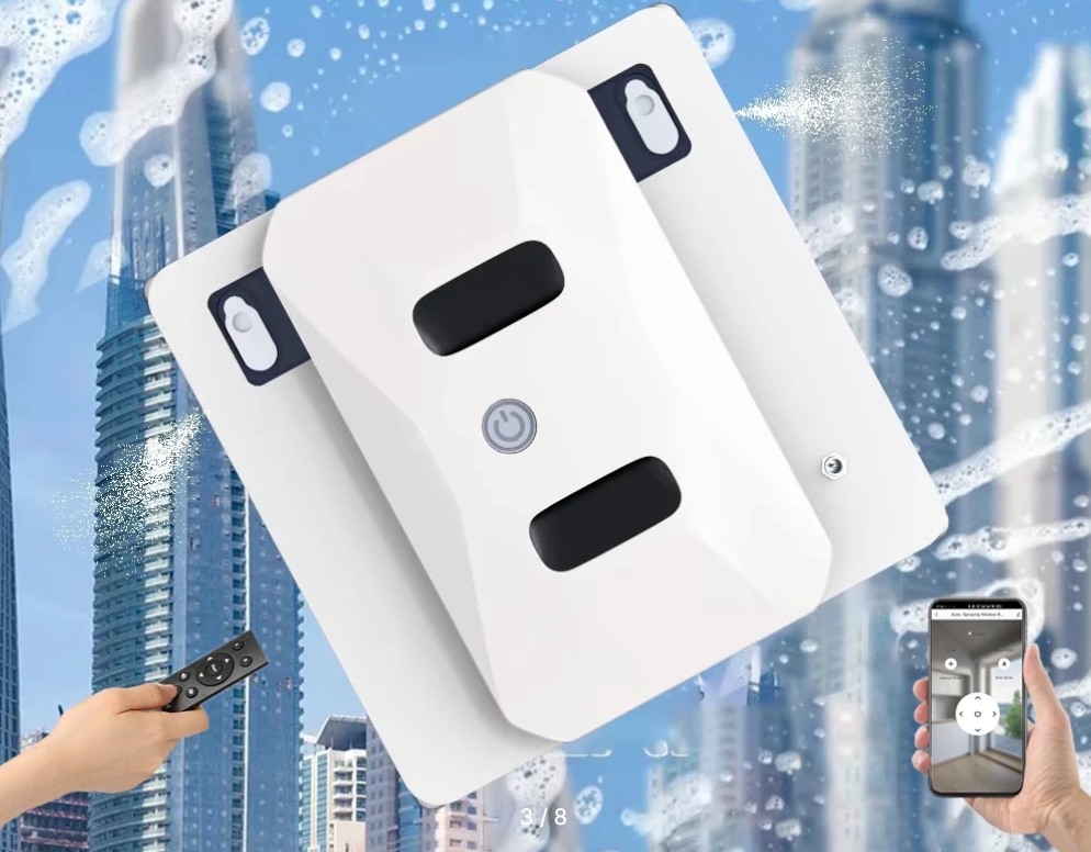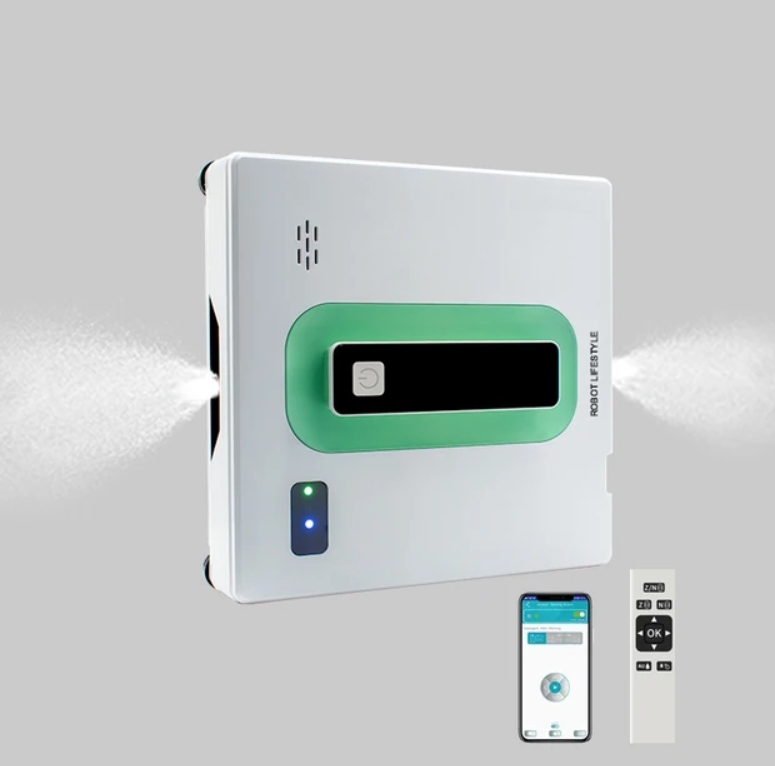 Эта интеллектуальная машина с автоматическим распылением воды и дистанционным контролем имеет квадратную конструкцию для покрытия углов без пропусков. Робот удаляет пыль и грязь на уличных и внутренних стёклах, используя мощный вакуум.