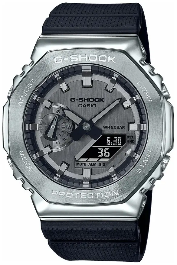 Минеральное стекло, интегрированное в многоугольный корпус, предохраняет циферблат от механических повреждений, а водонепроницаемость WR200 дает возможность погружения с аквалангом.