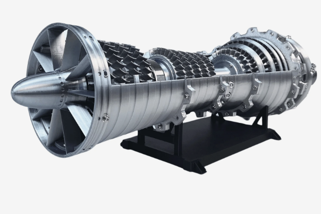 Это сборная модель турбовентиляторного авиационного двигателя, напечатанная по технологии высокоточной 3D-печати, с понятной внутренней логикой и аккуратной детализацией.