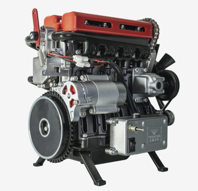 Отдельно выделяется наличие механической передачи и электропривода: после сборки модель не остаётся статичной, а демонстрирует движение основных элементов. Можно наблюдать, как работает цепь ГРМ, вращается маховик, синхронизируются узлы. Это даёт более живое понимание принципа работы двигателя.