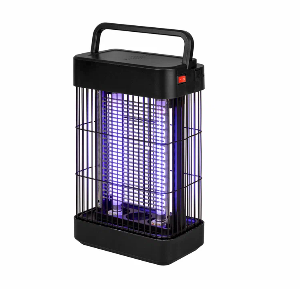 Тип — классическая УФ-ловушка с решёткой, которая привлекает комаров светом и поражает током. Работает от сети 220 В — значит, надёжно, без всяких «разрядился посреди ночи».