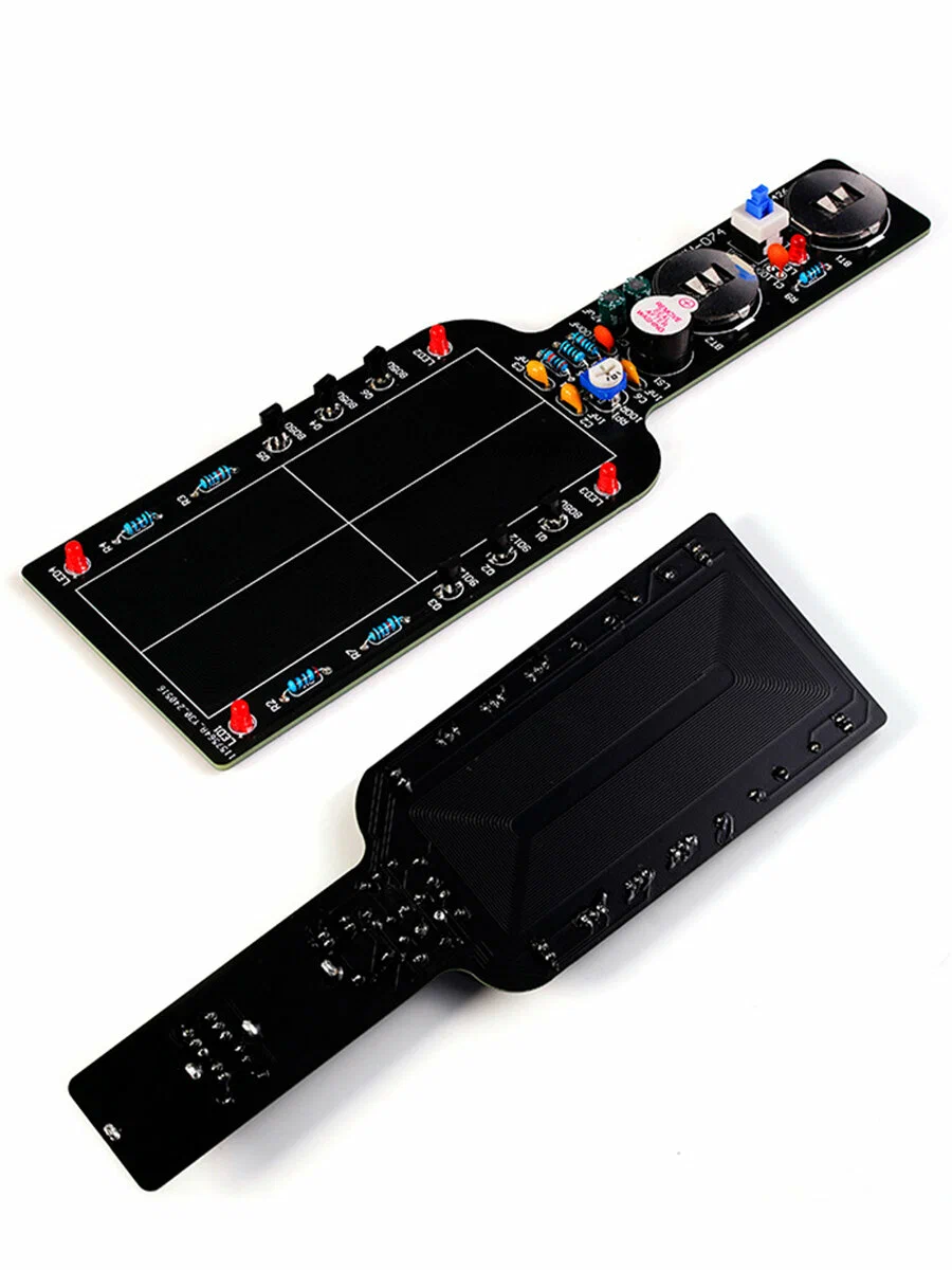 Набор содержит 34 компонента. После завершения сборки получается рабочий металлоискатель, способный обнаруживать металлические предметы на расстоянии до 8 сантиметров.