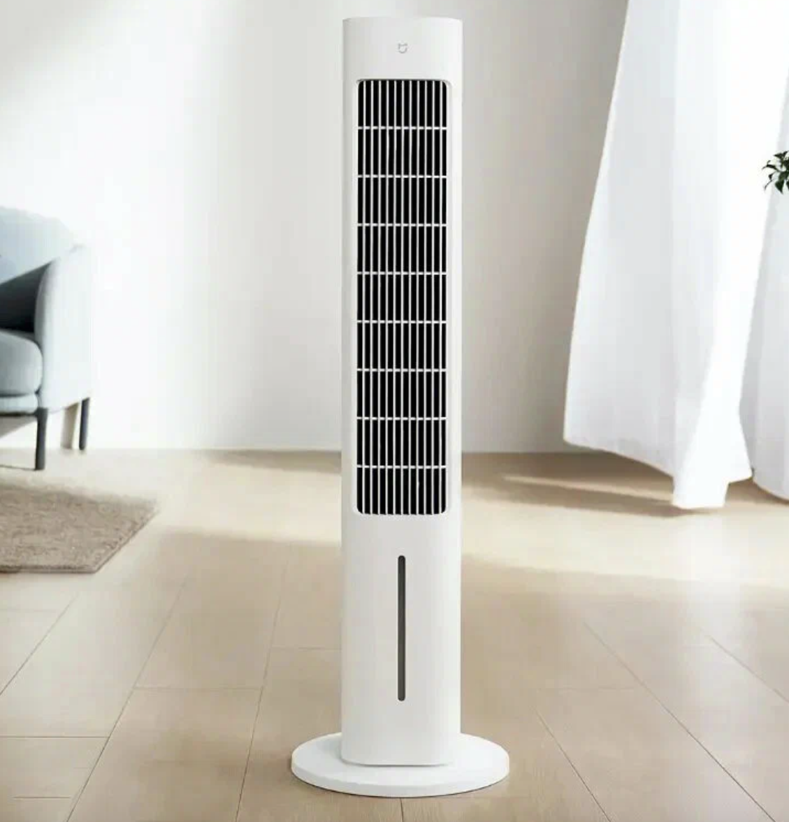 Это не вентилятор в привычном понимании, а умное устройство, которое охлаждает, увлажняет, очищает воздух и вписывается в экосистему «умного дома». Он рассчитан на площадь до 30 м², а это, на минуточку, полноценная спальня, гостиная или нормальный рабочий кабинет.