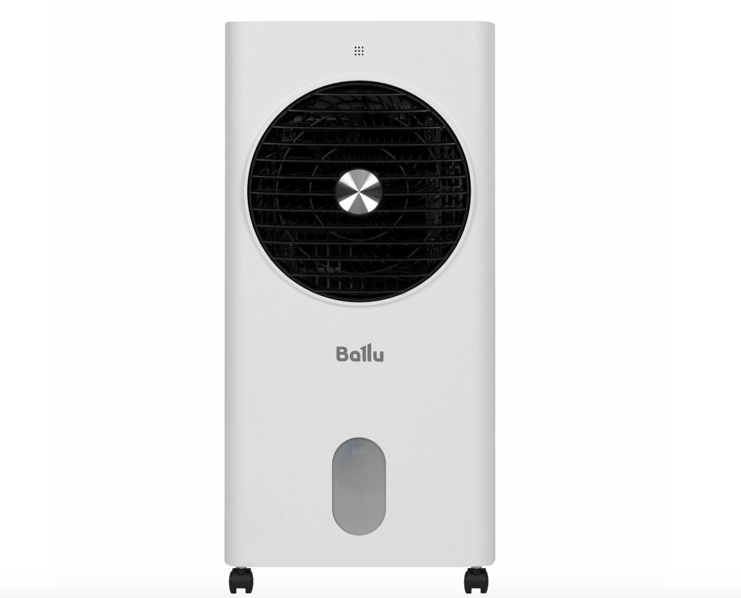 По габаритам компактный и удобный. Высота 65 см, ширина около 30 см, спокойно помещается даже в небольшой комнате. На колёсиках, так что легко переставить с места на место. Белый корпус смотрится нейтрально и впишется почти в любой интерьер. Вода заливается в бак объёмом 5 литров, этого хватит примерно на 5-6 часов беспрерывной работы. В комплекте идут два хладоэлемента, их можно замораживать и класть в резервуар для усиления эффекта.