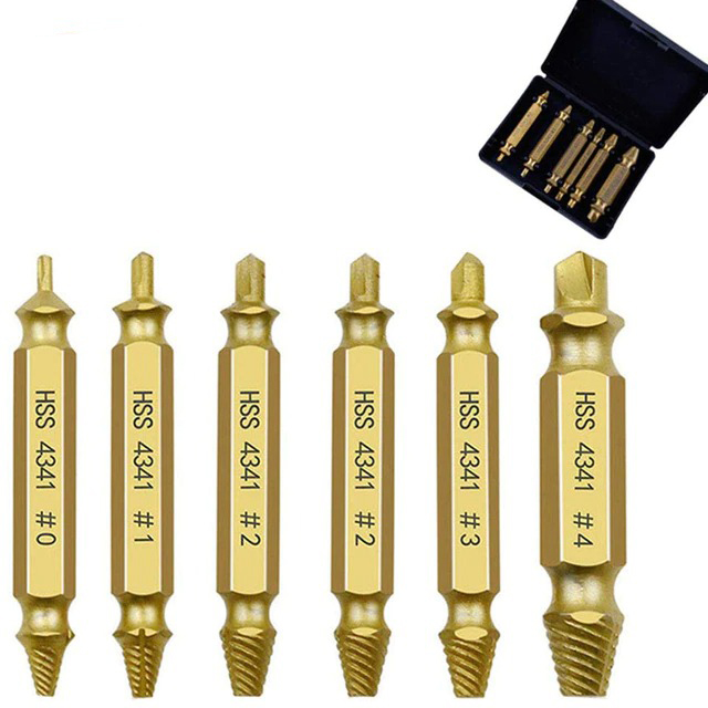 А вот такой наборчик точно пригодится — экстракторы способны удалить поврежденные болты или винты, которые невозможно выкрутить с помощью отвертки.