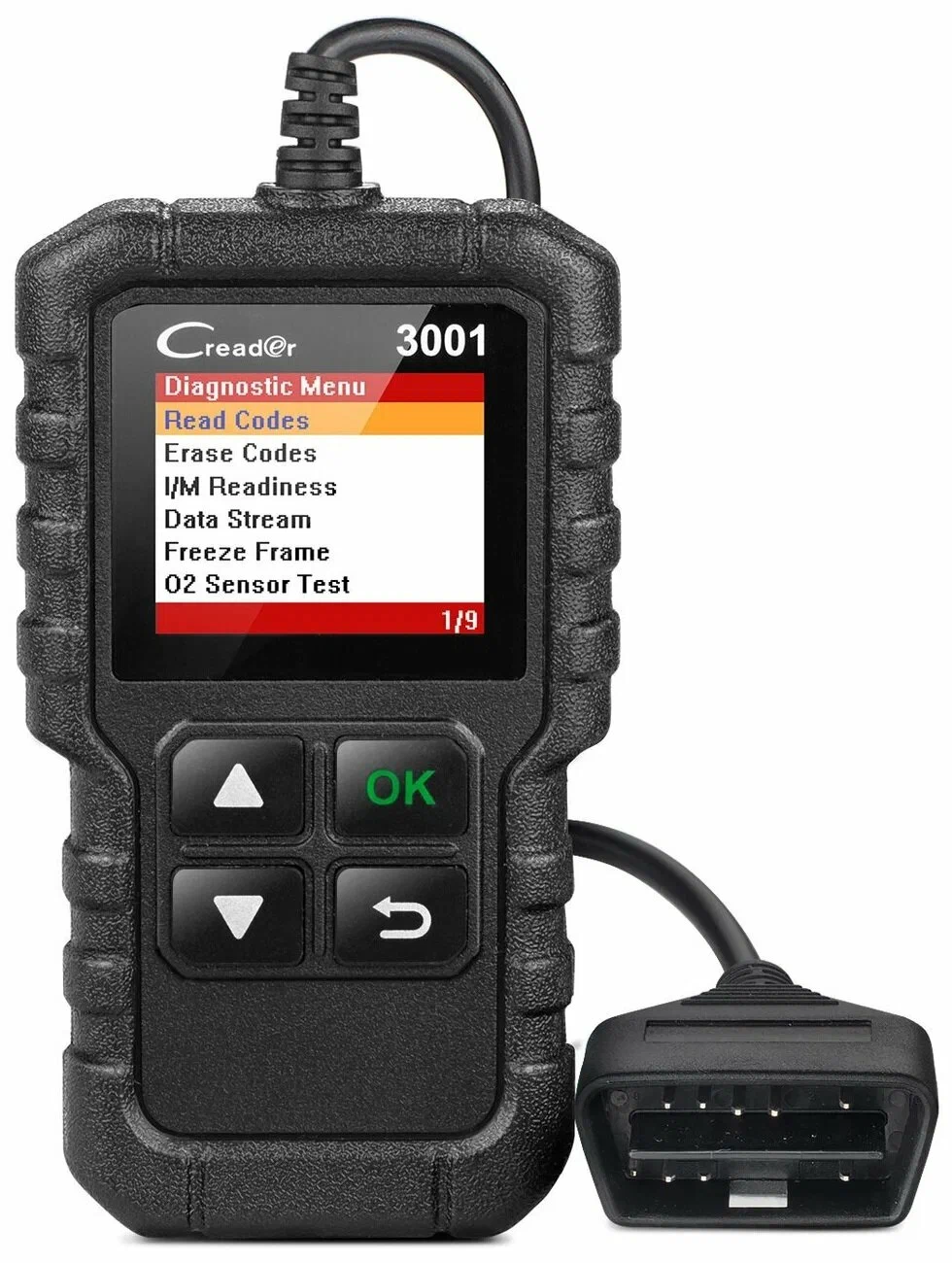 Универсальное средство для быстрого определения ошибок двигателя и мониторинга всей системы автомобиля. Обнаруженные ошибки могут быть удалены после чтения их расшифровки. Расшифровка ошибок производится из базы сканера под определенную модель автомобиля. Русский язык уже в базе, поэтому русификация не требуется. Цветной экран для удобства просмотра информации. Поддерживаются большинство произведенных автомобилей с 1996 года выпуска с протоколами OBD2 и CAN. Быстрая диагностика по запатентованной технологии One-click I/M по нажатию на одну кнопку. Поддерживаются общепринятые ошибки с маркировкой P0, P2, P3 и U0, так и узконаправленные ошибки с кодами P1, P3 и U1 определенных моделей автомобилей. Можно просматривать информацию в режиме реального времени или создавать стоп-кадры для дальнейшего использования. Построение графиков на несколько датчиков одновременно в режиме реального времени и многое другое. Диагностический сканер работает от линии питания в 18 В и не подходит для грузовиков.