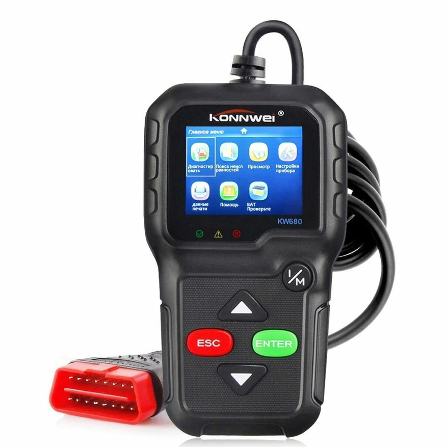 Бюджетная версия мультимарочного сканера от Launch. Для удобства использования присутствует цветной экран, на котором удобно читать графики и снятые с датчиков показания. Автомобильный гаджет может показать возникающие ошибки, стереть их, создать стоп-кадры запрошенных данных для дальнейшего анализа или сравнения с рабочими показаниями. Присутствует возможность просмотра данных с кислородных датчиков и лямбда-зондов. Кроме того, на экране отобразится подробная информация об автомобиле, его состоянии, проведенном тесте компонентов электроники и блоков автомобиля. Сканер можно подключать к компьютеру для получения необходимых обновлений или загрузки прошивок от производителя. А также моно загрузить на компьютер сохраненные графики и показания с датчиков. Поддерживаются все легковые автомобили с питанием от 12В. Присутствует поддержка широкого круга автомобилей с установленными диагностическими разъемами ОBD2 с 1996 годов выпуска и отечественные автомобили с 2012 года. Русский язык уже в базовой комплектации.