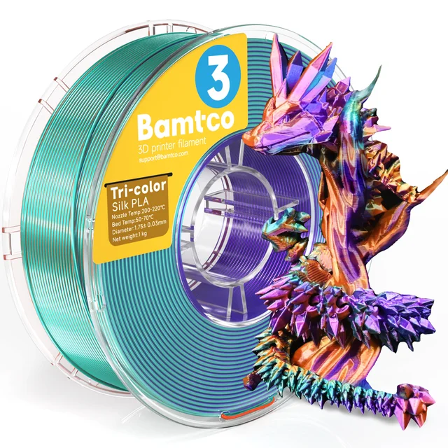 10. Bamtco Tri-Color Silk PLA 1,75 мм — филамент с насыщенным блеском и четкими цветовыми переходами