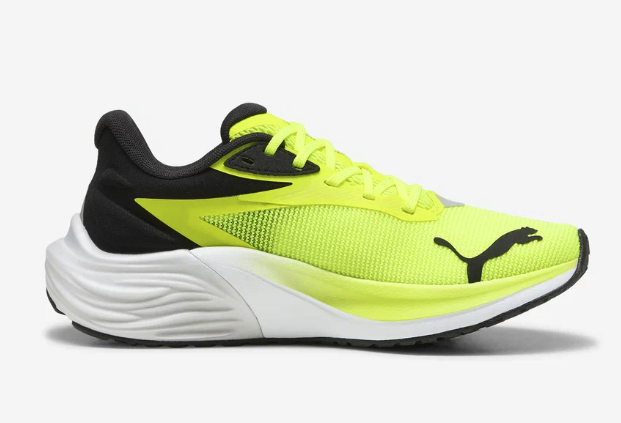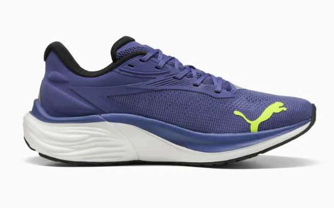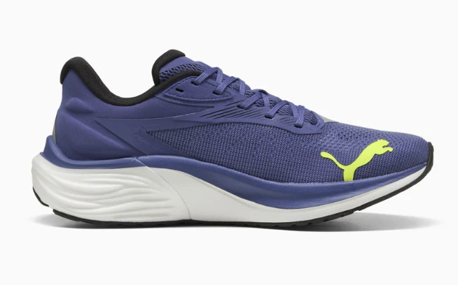 Пена NITROFOAM отдаёт энергию, а не гасит её. Промежуточный слой с пружинящим эффектом, но без разбалансировки. Это не подушка — это пружина. Под ним жёстче и надёжнее, с протектором PUMAGRIP, который уверенно цепляется и за сухой асфальт, и за мокрую тротуарную плитку. Подошва гнётся ровно там, где нужно, — и ровно настолько, чтобы ты это контролировал.