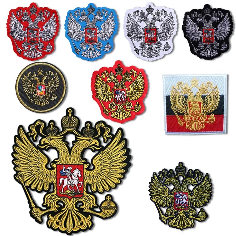 Двуглавые орлы, скипетры, отдельные перья — все эти элементы исполнены с поистине ювелирной точностью и красотой. Некоторые нашивки выглядят почти музейными экспонатами, другие более стилизованные, есть варианты в разных формах и цветах окантовки, но все они непременно подчеркнут вашу приверженность государственным символам.