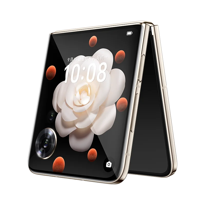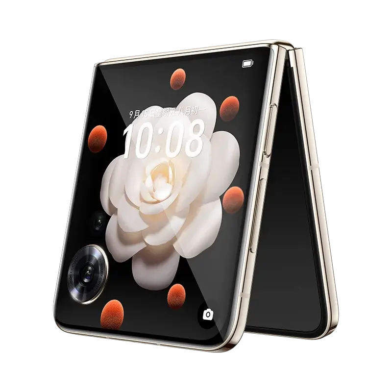 Премиальный складной смартфон‑"раскладушка" с гибким 6,8‑дюймовым AMOLED‑дисплеем (120 Гц) и внешним экраном диагональю 3,26″. В основе — флагманский чип MediaTek Dimensity 9200, объём памяти — 12 ГБ ОЗУ и 256/512 ГБ хранилища. Фотосистема включает три модуля: 50 Мп с оптической стабилизацией, 48 Мп сверхширокоугольный и 32 Мп телефото с 2x оптическим увеличением. Фронтальная камера — 32 Мп. Батарея на 4300 мА·ч поддерживает зарядку мощностью 44 Вт, а защита корпуса соответствует стандарту IPX4. Работает смартфон на Android 13 с фирменным интерфейсом ColorOS 13.2. Вес — около 198 граммов.