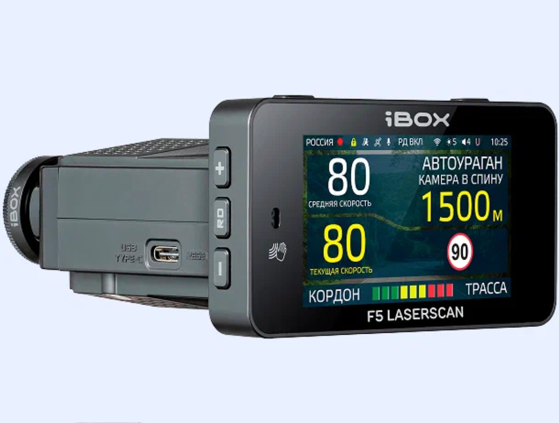 Еще один яркий представитель компактных устройств «все-в-одном» — это модель F5 LaserScan от бренда iBOX. Как видно из названия, в данном устройстве добавлено определение мобильных и стационарных комплексов контроля с лазерной системой измерения скорости. Отмечу функцию сигнатурной фильтрации, а также умный фильтр город/трасса, который позволяет отфильтровать помехи и снизить количество ложных срабатываний.