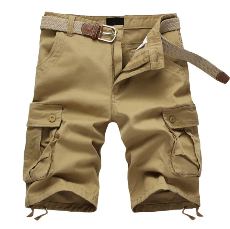 Длина шорт примерно до колена. Застегиваются на молнию и пуговицу, можно вставить ремень (ремень покупается отдельно или используется свой, к шортам в комплекте он не прилагается!).