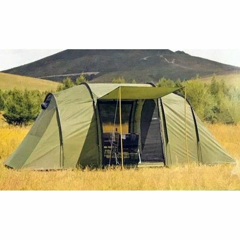 Эта двухслойная палатка оснащена вентиляционными отверстиями, навесом, проклеенными швами и тамбуром для вашего комфорта и защиты от непогоды. Водостойкость тента достигает 3000 мм водного столба, а дна — 6000 мм водного столба. Конструкция палатки быстросборная, форма — нестандартная. Вместимость палатки — 6 мест, с одним входом и одним тамбуром. Материалы изготовления включают полиэстер для тента и сталь для каркаса. Габариты внешней палатки составляют 450x220x185 см, а габариты транспортной упаковки — 28х68х28 см. Вес палатки — 8 кг.