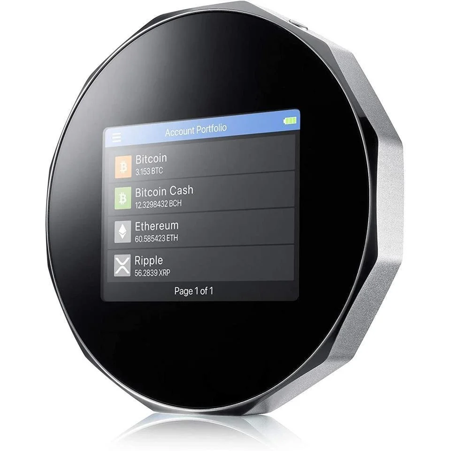 Криптокошелек SecuX V20 отличается от остальных устройств такого рода своим запоминающимся дизайном. Подключение к ПК или смартфону происходит по Bluetooth 5.0 либо по USB-C. Поддерживается работа с Android, iOS, Windows, Linux, macOS и ChromeOS. Встроенный сенсорный дисплей при диагонали 2.8″ имеет разрешение 360 x 240 пикселей.