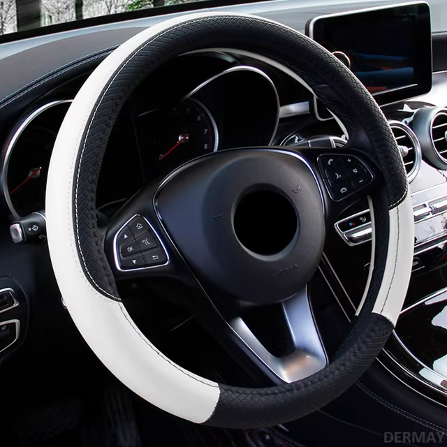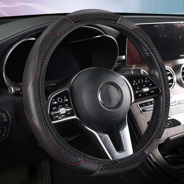 Чехол на руль, диаметром 37-39 см, из искусственной кожи с текстурой под углерод — для тех, кто часто за рулём и ценит комфорт. Подходит для стандартных рулей, не скользит, не парит руки, легко устанавливается. Доступен в 11 расцветках. Размер М.