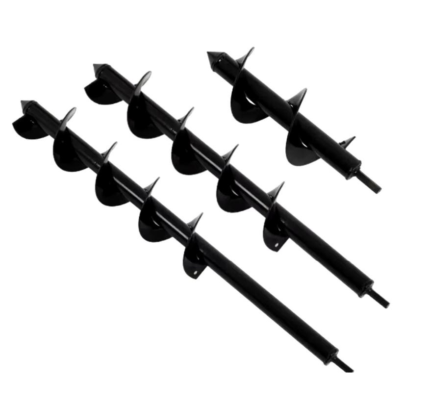 Изготовлен из нержавеющей стали стойкой к износу. На выбор представлено несколько вариантов бура, отличающихся толщиной и длиной стержня. При этом размеры самого маленького бура составляют 50*180 мм, а самые максимальные варианты имеют габаритные размеры 90*400 мм и 80*450 мм.