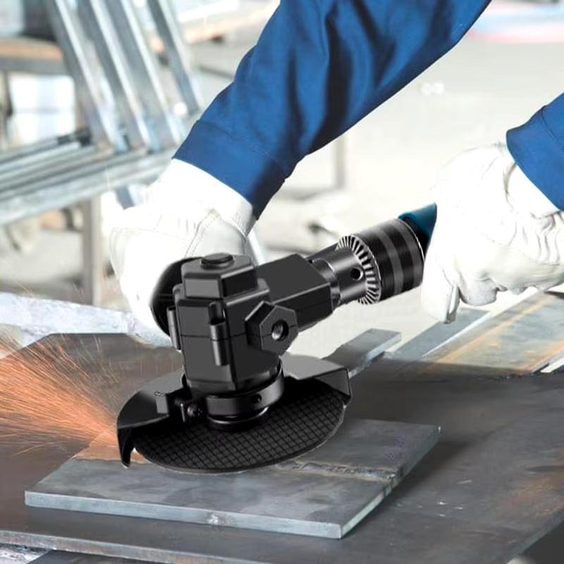 С помощью этого устройства можно использовать обычный шуруповерт в качестве маломощной УШМ. Адаптер состоит из угловой насадки с редуктором, защитного кожуха, прижимной гайки, а также съемной ручки.