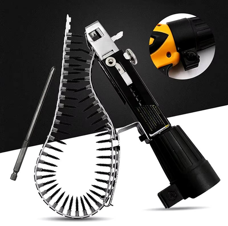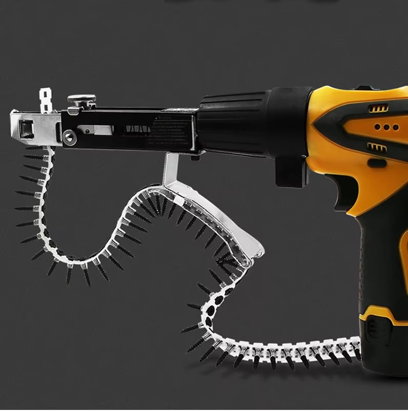 Весьма полезная насадка автоматической подачи саморезов для их дальнейшего монтажа. Позволяет быстро вкручивать шурупы не тратя время на лишние манипуляции. Особенно это может быть полезно, когда необходимо выполнять большой объем работ: при монтаже гипсокартона, сборки мебели, кровельных работах и прочее.