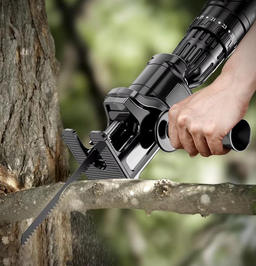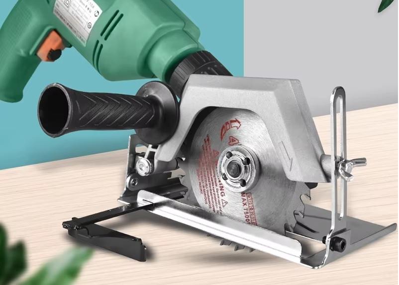 Этот адаптер способен расширить возможности шуруповерта или дрели до уровня небольшой циркулярной пилы. С его помощью можно производить раскройку листовых материалов таких как гипсокартон, деревянные доски и бруски, ламинат и прочее.