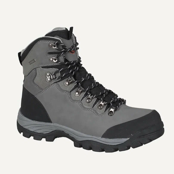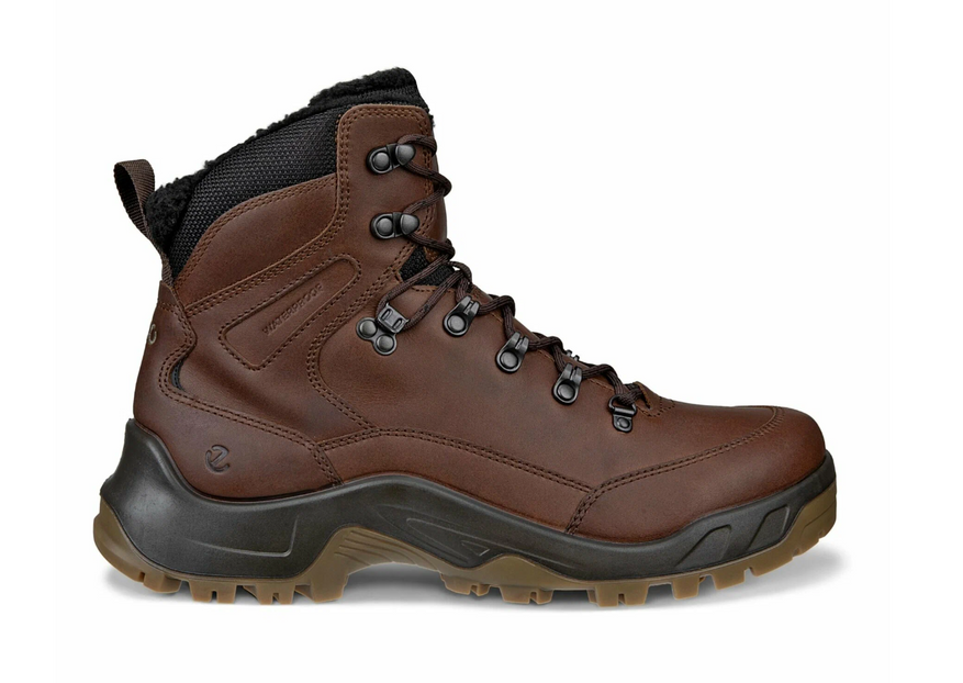 Это высокие зимние хайкеры с закрытым верхом и удлинённым язычком, рассчитанные на холод и ветер. Верх собран из натуральной кожи с усилениями из полиуретана и полиэстера в зоне носка и пятки. Конструкция плотная, без открытых участков, с поддержкой голеностопа.