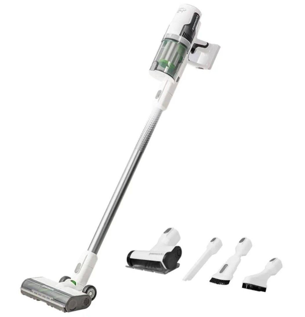 Еще один оригинальный вертикальный пылесос — это модель GD24SVK4D от бренда Greenworks, известного качественным электроинструментом. Изюминка модели — это совместимость с аккумуляторной платформой Greenworks 24 В. То есть батареи подходят и к инструменту, и к пылесосу, что обеспечивает определенную свободу. Производитель подошел к компоновке модели с душой — в комплектации присутствует множество насадок, имеется массивная вертикальная стойка, предусмотрены разъемы для быстрой зарядки смартфона и гаджетов. Тестирование и обзор Greenworks GD24SVK4D по ссылке.