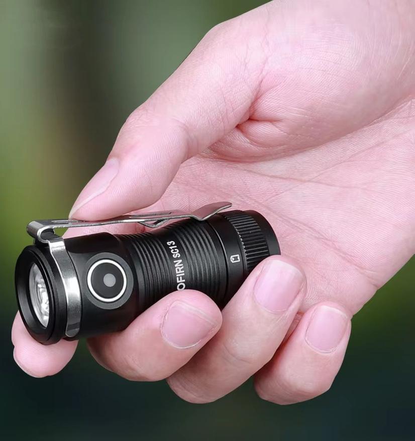 Добавлю еще один фонарик от Sofirn. Модель SC13 Mini представляет собой суперкомпактный, но яркий карманный суперкомпакт с металлическим корпусом, который может выдать мощный световой поток в 1300Лм (в турбо-режиме) и осветить дорогу на расстояние до 217м. Источником питания является укороченный съемный аккумулятор формата 18350. Источником света является яркий светодиод SST40. Цветовая температура 6000-6500К. Время работы от одного заряда составляет от полутора до ста часов в зависимости от выбранного одного из шести режимов. Фонарик имеет хорошую защиту от воды уровня IP68. Кнопка оснащена индикатором заряда батареи. Есть торцевое магнитное крепление и встроенный зарядный порт USB Type-C.
