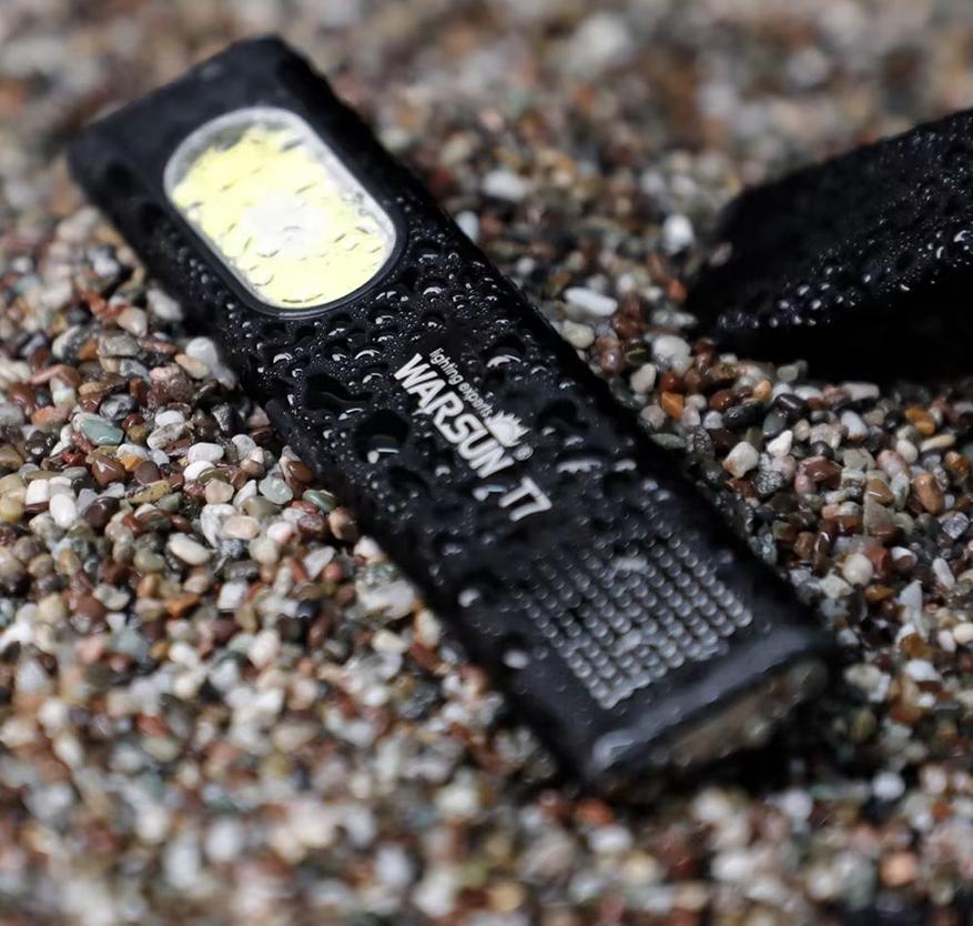 Еще один качественный карманный фонарик, но теперь от бренда Warsun. Корпус плоской формы изготовлен из окрашенного в черный цвет алюминия. Такая приплюснутая конструкция наиболее удобна при переноске в кармане. Кроме этого, установленная на корпусе клипса дает возможность закрепить фонарь на кармане куртки или же ремне дорожного рюкзака. Фонарик оснащен двумя световыми источниками, которыми выступают COB-панели (до 800Лм): первая располагается на торце, а вторая сбоку на плоской боковой части корпуса. Доступно рабочих режимов свечения. Литий-ионная батарея встроенная. Есть магнитное крепление. Поддержка быстрой зарядки, максимальная продолжительность свечения до 12 ч. Влагозащита IPX4.