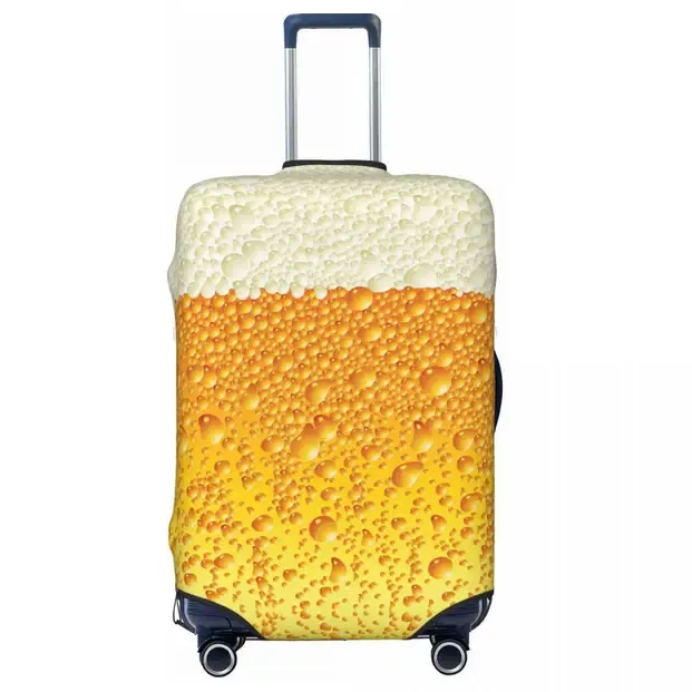 Чехол для багажа с принтом в виде напитка с пузырьками. Это эластичный аксессуар отшит из полиэстера, ткань равномерно тянется и плотно облегает корпус, защищая его от пыли, грязи и мелких царапин. Конструкция ориентирована на реальное использование: сверху предусмотрены отдельные отверстия под телескопическую и верхнюю ручки, сбоку сохранен доступ к боковой ручке, а снизу чехол фиксируется сочетанием молнии и пряжки, что повышает стабильность и не мешает свободному вращению колес. Яркий принт делает чемодан заметным на багажной ленте. Чехол поставляется поштучно и подходит для стандартных дорожных чемоданов.