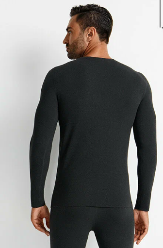 Этот верх от комплекта от известного мирового производителя нижнего белья создан на морозов до -20С. Он выполнен по трехслойной технологии из шелка, шерсти и полиэстера. В отзывах пишут, что лонгслив действительно очень теплый и на южные зимы брать не стоит. Плотность материала 300 грамм/м². Размеров не так много, цвет один.