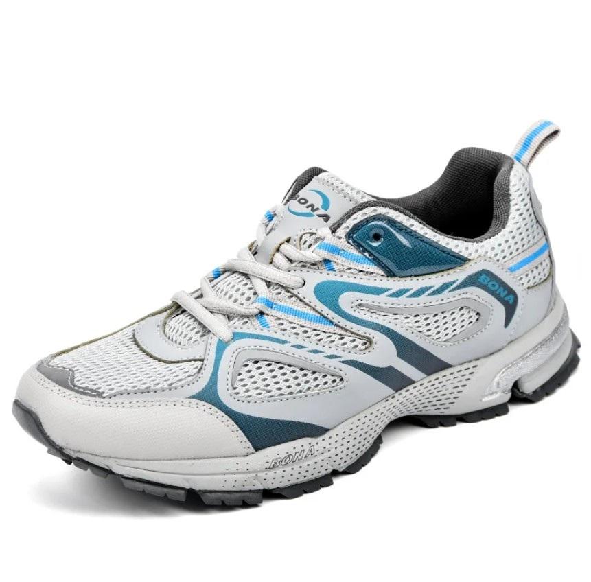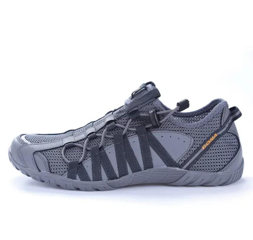 Также предлагаю вашему вниманию ещё одну модель надёжных и практичных кроссовок от Bona, подходящих для тех, кто ищет хорошую вентиляцию и комфорт в жаркое время года. Модель максимально упрощена, однако она сохраняет фиксацию на стопе при ношении. Для повышения уровня фиксации имеются специальные затяжки, заменяющие шнурки.