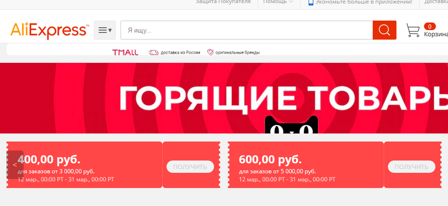 Алиэкспресс раздает жирные купоны. Есть скидка на 400р и 600р. На 1200р сейчас кнопка неактивна, но возможно скоро опять появятся. Действуют до 31 марта и можно будет применить на ближайшей распродаже Aliexpress посвященной дню рождению площадки. В настройках профиля должна стоять страна доставки Россия или валюта рубли.