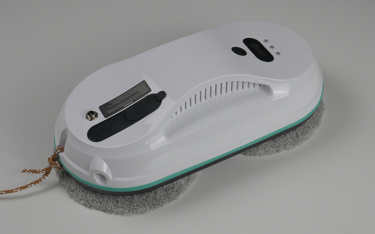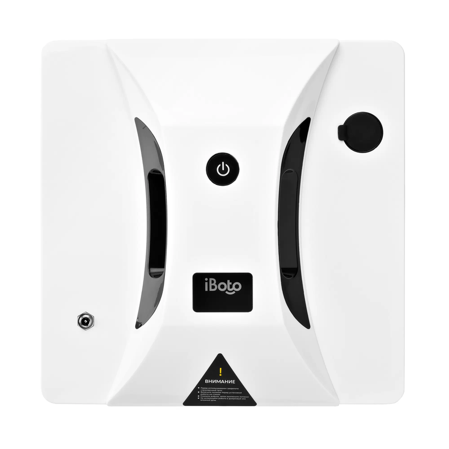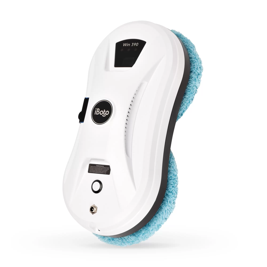 iBoto Win 390 похож на Genio по дизайну — такой же белый корпус с черными вставками, Х-образная ручка и единственная кнопка на лицевой панели. Но сам подход к уборке отличается: iBoto не просто перемещает по стеклу салфетки, но и разбрызгивает перед собой воду. Мопы остаются влажными на протяжении рабочего цикла и обрабатывают всю поверхность с одинаковой эффективностью. Алгоритм работы выглядит следующим образом: робот пшикает на стекло, проворачивает мопы и наезжает на смоченный участок, затем снова брызгает, едет вперед и так далее до завершения программы. В коробку положили 5 пар салфеток — можно помыть лоджию без промежуточных остановок. Управлять проще всего пультом, но, если поставить приложение, робот будет присылать уведомления о завершении работы или возникновении нестандартных ситуаций. iBoto Win 390 при сравнительно скромном ценнике предлагает современный функционал.