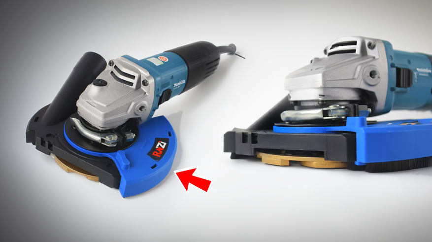 Кожух выпускается в двух размерах 125 мм и 180 мм, совместим с большинством популярных УШМ (Bosch, Makita, DeWalt, Flex, Milwaukee и др.). Устанавливается буквально за минуту: достаточно зафиксировать зажимное кольцо и подключить пылесос через стандартный шланговый адаптер.