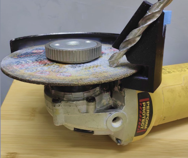 Корпус выполнен из прочного пластика PETG: он лёгкий, но выдерживает вибрацию и нагрев. Работать с такой насадкой можно где угодно: в гараже, мастерской или прямо на объекте. Главное, закрепить её болтом М6, и вся установка займёт не больше пары минут. После этого достаточно включить болгарку и плавно провести сверло по направляющему отверстию. Угол заточки задаётся автоматически, так что даже без опыта можно добиться правильной геометрии режущей кромки.