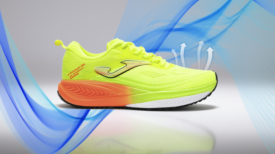Верх из прочной сетки AirMesh — один из самых вентилируемых в своей категории. Нога дышит в движении, нет ощущения «полиэтилена» даже при жаркой погоде. Воротник мягкий, шнуровка фиксирует стопу без жёстких точек. Язычок тонкий, но не теряет форму. Внутри всё сделано для комфорта на темпе, а не на показ.