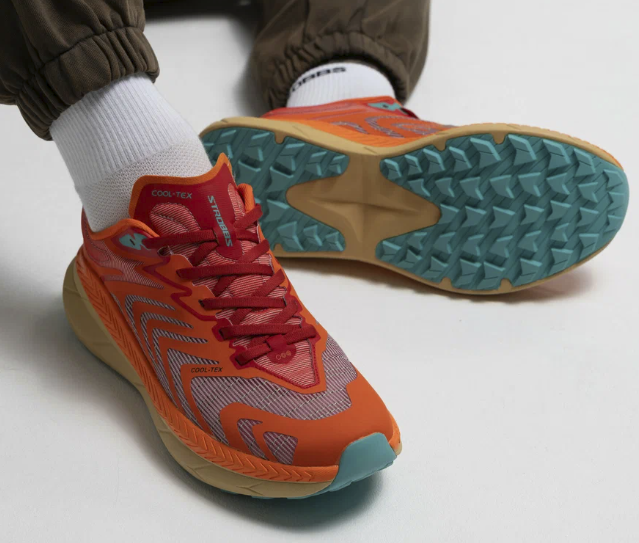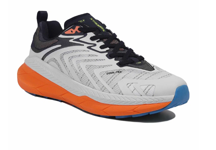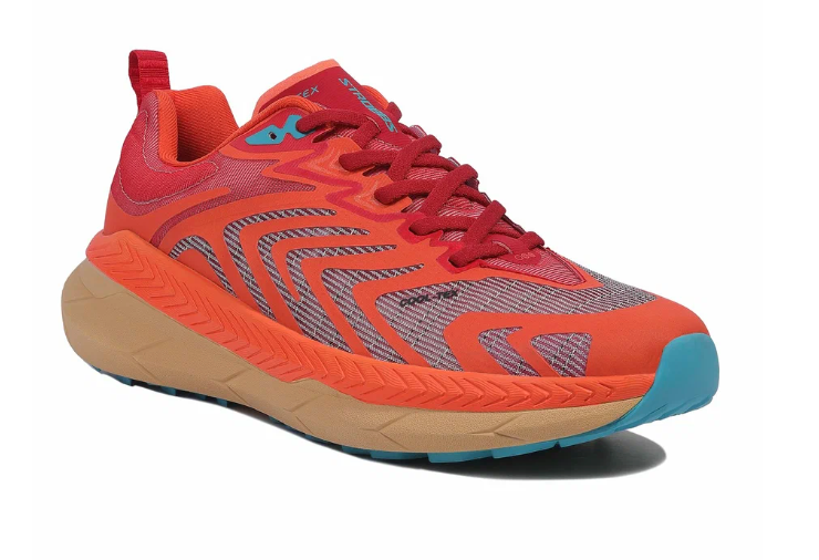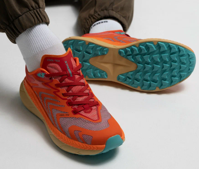 Верх — мягкая, эластичная сетка, которая не душит ногу, а реально проветривается. Даже в жару внутри не душно. Посадка точная: нога сидит плотно, но без давления. Переработанный задник даёт ощущение поддержки, а не жёсткого каркаса. Визуально — чёткая техничная модель, никаких лишних деталей, чёрный с оранжевым — строго, но не скучно. Есть и другие более спокойные расцветки.