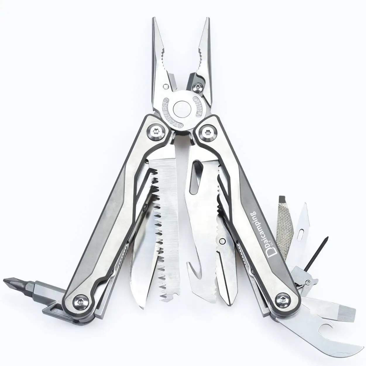 Помимо плоскогубцев, в мультитул встроены нож, мини-пила, кусачки, ножницы, стропорез, стеклобой, линейка и набор отверток, включая крестовую и плоскую. Пила выполнена из стали 420J2 с твердостью до 50HRC и оснащена переплетёнными зубьями, что позволяет легко распиливать древесину толщиной до 20 мм.