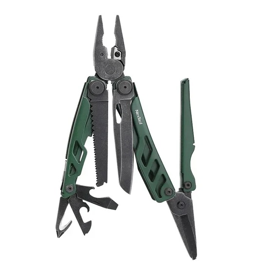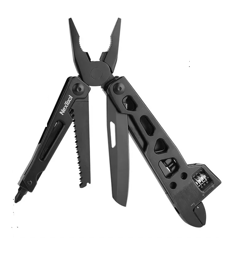 Ещё один представитель бренда NexTool, однако теперь с расширенным перечнем инструментов (16), заключенных в одном корпусе. Его размеры составляют всего 110*40*21 мм, а вес — 245 граммов, благодаря чему он легко помещается в карман или сумку. Основным инструментом служат универсальные плоскогубцы, выполненные из нержавеющей углеродистой стали 30Cr13. Они способны выполнять сразу несколько задач — зажим, скручивание, резку и завинчивание.